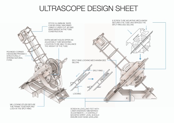 Ultrascope自动化望远镜套件的费用很低,不算智能手机只312美元就能得到。而且它的组装也很方便,使用很简单的工具就能完成。Ultrascope 采用反射式望远镜设计,支架本体采用 3D 打印,而 Ultrascope 计划中,摄影部分只需要一部智能手机或平板就可以,电子部分方面就会专用的线路板(本体只要 10 英磅,未连上面的 Chips)。不过,Ulrascope 还有很多细节未公布,例如有没有采用 GPS 作定位、追踪模式等等,而据现有数据应该会有“一条龙”服务,即是有完整个套装可供购买。