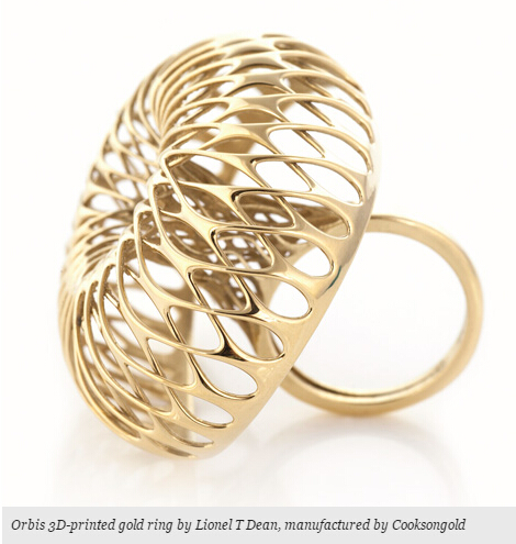 Lionel T Dean是一位产品艺术家,同时是英国FutureFactories公司创始人及创意总监。他从事数码设计和制造技术的创意研究已有十余载,在3D打印艺术与设计领域拥有最前沿的见识。作为一名“未来创客”,Lionel T Dean表示数字化生产及3D打印可能将“重塑珠宝行业”。以下是他参与设计及制作的3D打印金质珠宝系列(18K金)。