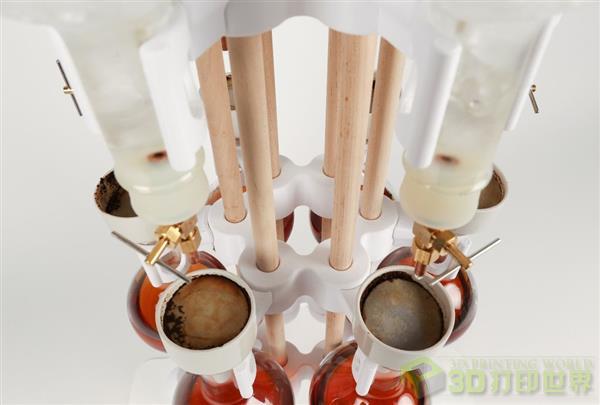 《3D打印世界》讯/ Instrucables设计工作室的Jonathan Odom设计出一套3D打印的多容器冰滴咖啡装置。这套装置制作精巧,有6个容器可以盛装6种不同口味的咖啡。它是由39件不同的3D打印部件拼装起来的。