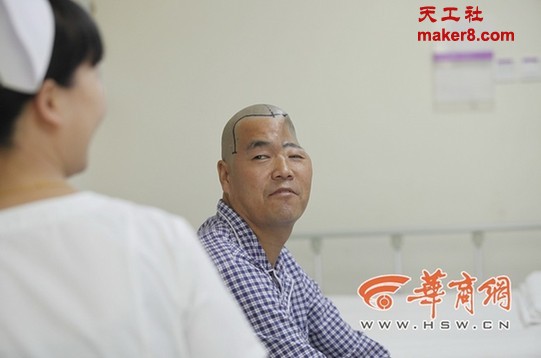 据该院舒茂国教授介绍,像老胡这样脑盖大范围凹陷的患者非常少见,修补脑盖是一项非常复杂的技术,在国际上也很罕见。医院组织全院数十位专家讨论,决定利用3D打印技术“打印”出钛网修复脑盖,并决定免除老胡的手术费用,同时美国一家公司决定捐助重建颅骨的材料和3D打印的全部费用。
