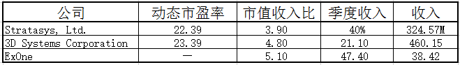 首先,经过长时间的修正,人们对3D企业的评估渐趋合理。比如,Stratasys和3D Systems动态市盈率将近22,不及两年前的一半。值得注意的是,两家公司的市值收入比小于5,并且增速稳健。
