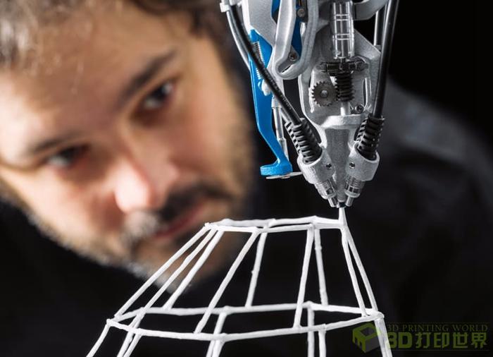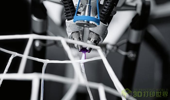 据了解,绑在其三脚架似的机械定位系统的末端的是一个精确的喷丝头,这个喷丝头上使用的是均匀的2400tex玻璃纤维。此外还有一台计算机与其连接,通过定制的3D建模软件为其提供需要的位置数据。