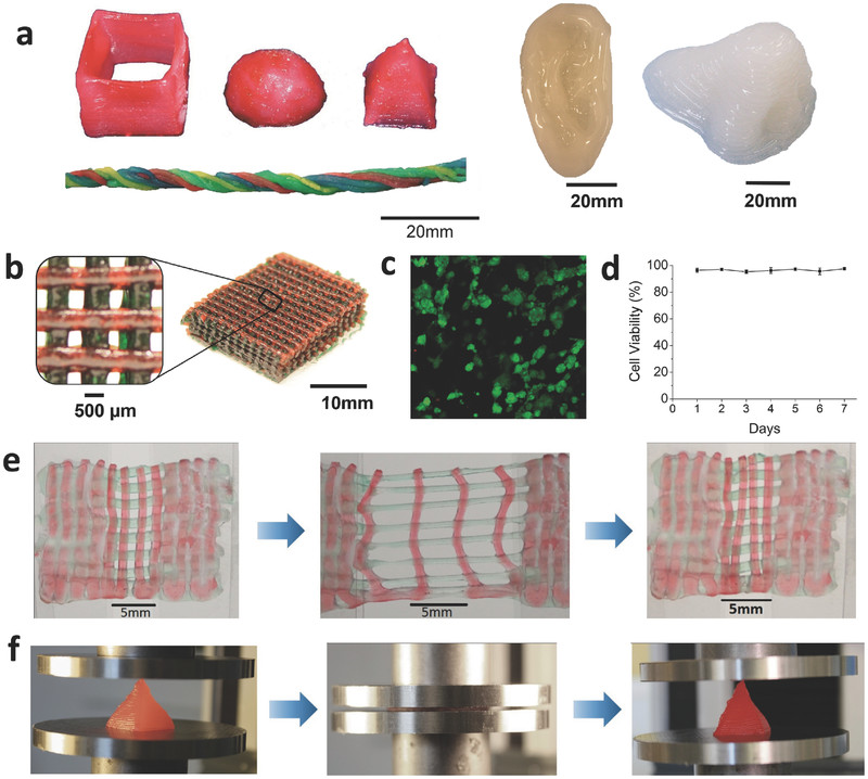 之前的水凝胶除了无法3D打印之外,而要获得坚韧的属性就要加入一些特殊的化学品,这就几乎无法用它们来封装活细胞,因为这些化学物质会很快都让它们死光光。