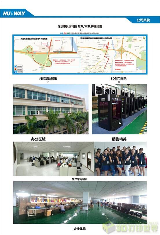 深圳优锐科技有限公司成立于2003年,是阿里巴巴13年的金牌供应商。货供全球。生产基地坐落于科技力量雄厚的深圳龙华新区观澜大道17号(竹村西区工业区),公司于2010开始筹划研发和制造3D打印机,在快速打印不堵头,不断料,不翘边的技术上。在打印机各轴定位的精度上,在提升打印机的速度等方面,优锐科技领先的3D打印机技术已申请和获得国家专利,产业发展突飞猛进。
