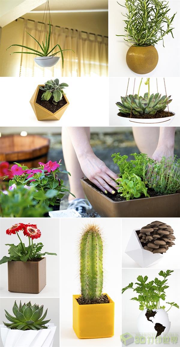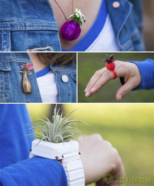 这个团队推出的3D打印花盆包括各种各样的风格,像放在厨房柜台的花盆(种植可食用的植物的理想场所)、悬挂花盆、壁挂花盆、游戏装置花盆等,最奇葩的是可穿戴的花盆,像戒指、项链、手表等,用更高大上的说法这是一种有机时尚,另外消费者还可以定制花盆,相信这是送给园艺爱好者最理想的礼物。