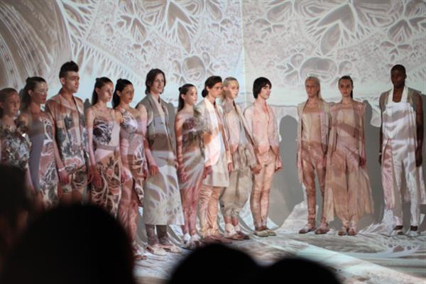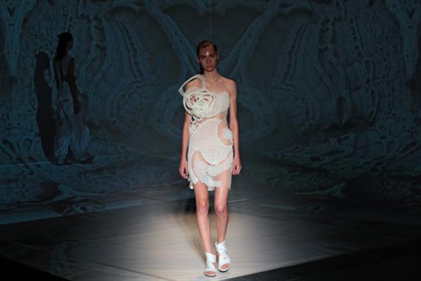 据悉,三位设计师在设计过程中使用了Materialise的软件服务。2013年的他们的3D打印处女秀也曾经与Materialise合作过,如今设计师们对于3D打印技术的掌握与运用显然已经更加娴熟了。设计师Asfour介绍说:“我们成倍地增加了3D织物的比例,而且其几何形状变得更加复杂了。”