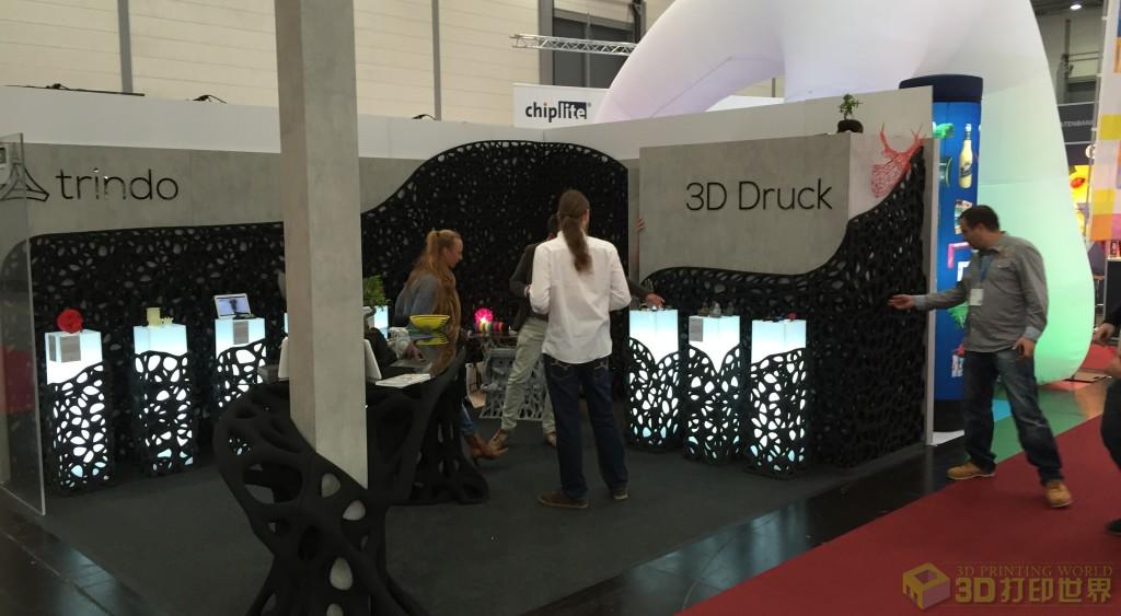 《3D打印世界》讯/ Trindo是一家慕尼黑的3D打印服务机构,近日该公司在2015德国视觉传播与广告标识展览会(简称Viscom Dusseldorf)上展出了首个全3D打印的展位。据《3D打印世界》了解,该展位是用一台工业级的大型3D打印机打印制作的,并且很方便在展会现场直接搭建拆装。