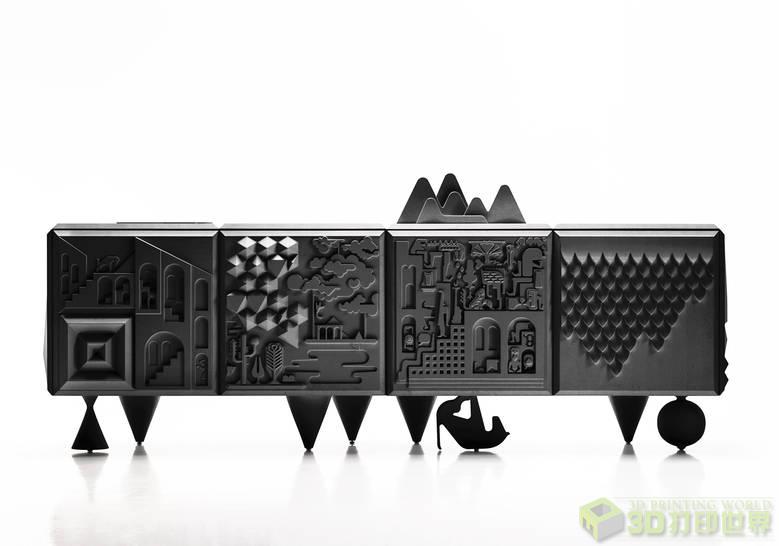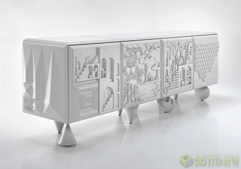 目前,囿于传统制造技术的限制,橱柜往往是模板化生产,看起来大多千篇一律。但3D打印技术的好处之一是,可以很方便地定制,以适应用户的口味。这是由巴塞罗那设计公司Cabinet Tout设计的自定义3D橱柜壁画,可以用来装饰用户的多层存储橱柜。另一个例子是3D打印的“弯曲城市”咖啡桌。在这样的桌子上喝咖啡,真是别有一番滋味!