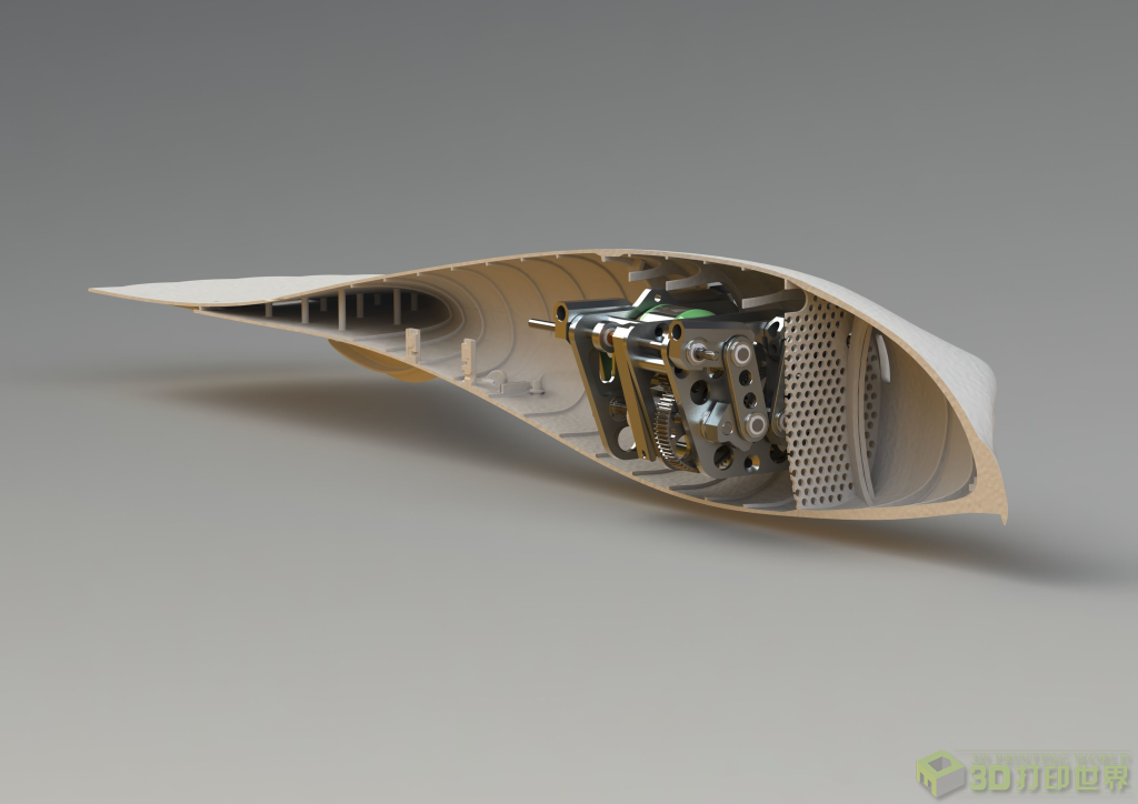 据了解,这只机械鸟是用玻璃填充的聚酰胺激光烧结而成。“增材制造能发挥设计与制造的灵活性,在CFS设计师们的努力下创造出美丽的、有机的形状。此外,设计师们还得到了更多衍生设计的自由空间。我们也借此降低了成本。”