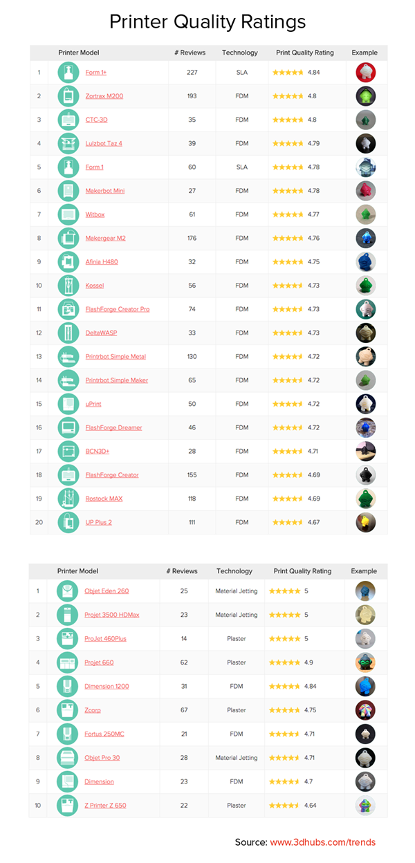 3D HUBS一月份打印质量评分