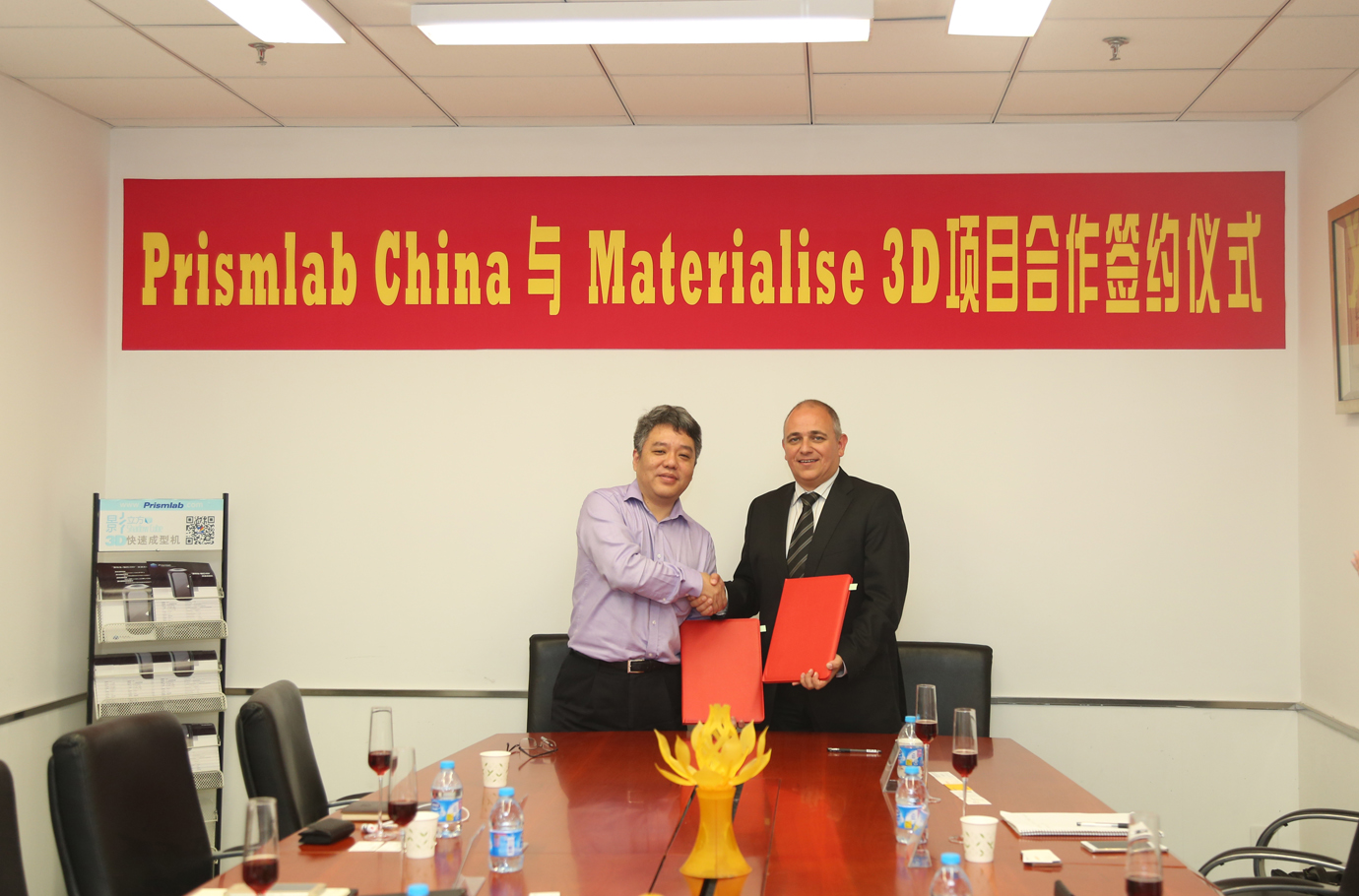 2015年6月2日上午10:00点,比利时Materialise公司全球副总裁Mr.Johan Pauwels代表其公司和中国3D生产厂商“上海普利生机电科技有限公司”董事长侯锋先生举行会谈,并签定了战略合作协议。