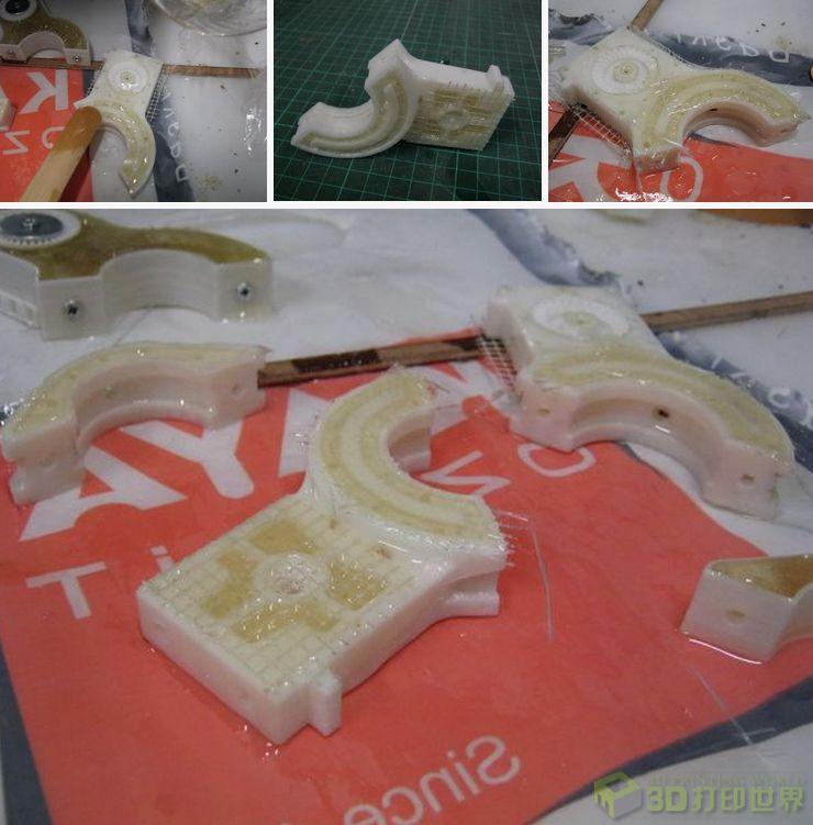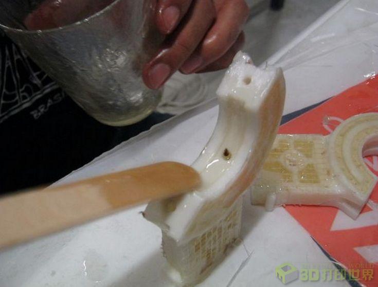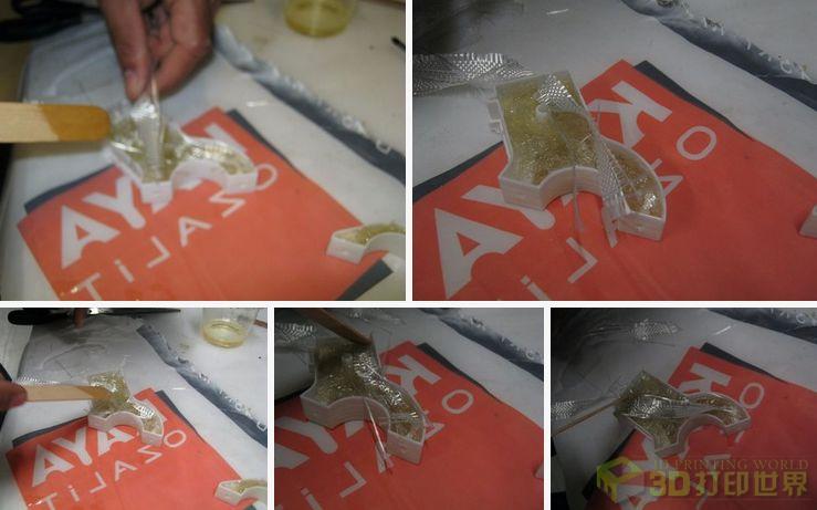 1.环氧树脂和ABS (3D打印的材料)是不会粘连的。所以在建模的时候要留有一些小孔,让前者能更好地凝固。