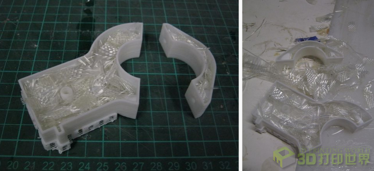 所周知,普通3D打印的产品一般都是塑料制品,稍有不慎就会“被掰弯”,而且耐耗性不强,所以不能应用于更广泛的场景。如果有什么方法可以强化部件的话,那想必是极好的。