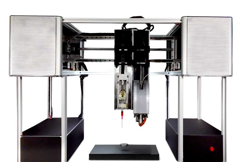 EnvisionTEC的3D生物打印系统在我们的Top 10列表中排名第一,主要是因为这款产品的制造者本身在生物3D打印领域占据举足轻重的地位。其使用的注射成型工艺由德国弗莱堡材料研究中心研发,与其他大多数生物3D打印机一样,将三维CAD制图模型和患者的CT扫描数据转化为实体的三维脚手架,外观是设定好的,内部结构自由。这款打印系统与两个产品:高端的五喷头制造者系列(Manufacturer Edition),以及面向科研机构的三喷头开发者系列(Developer Edition)。这两款3D生物打印机用于制造生物支架,软质水凝胶、聚合物熔体、陶瓷和金属等材料都可以兼容。