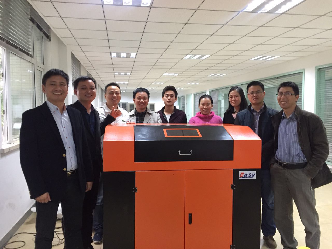 据介绍,3DP全彩打印技术因打印分辨率高,成型工艺复杂,在中国市场几乎是空白。惠普即将推出的多射流微喷技术即是3DP技术的一种。武汉易制科技公司研发团队共10人,其中5人为博士。除了核心零部件喷头为进口外,关键工艺如打印喷头控制、彩色切片软件设计、材料等均属自主研发。主要技术人员出自华中科技大学,拥有数十年3D打印领域的技术经验积累,并在武汉滨湖等知名3D打印企业有多年从业经验。