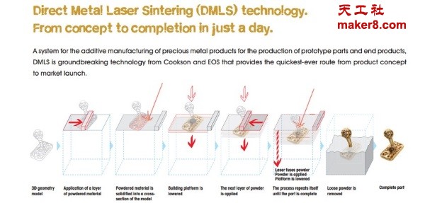 Cooksongold公司欧洲产品经理David Fletcher解释说:“利用CAD设计,DMLS技术将挑战设计师的想象力,使其创造出以前无法完成的珠宝和手表组件。”