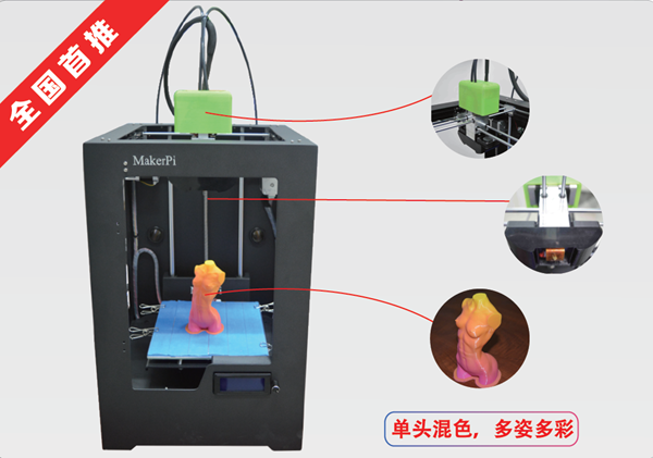 深圳森工科技有限公司在近日推出国内首款混色3D打印机,标志着国内FDM原理3D打印机即将迈入彩色3D打印的新时代。