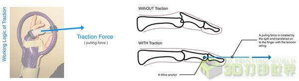这种3D打印的指板夹提供了一张更为有效、符合人体动态牵引机制的方案。“这种器械装置使用简单、外观时尚简洁,比一些常用的医疗方案在价格方面更为实惠。”弹簧式的结构,能够将手指固定在适合连接愈合的位置,同时一定程度上活动恢复。一般来说,患者只需正确佩戴4-6周就能痊愈。
