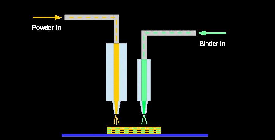 该技术会在制造过程中使用两种不同的材料,一个是主要的母材料,另外一个是聚合物粘合材料。材粘合料主要起到临时支撑和粘合母材料的作用,并且可以通过使用高温加工工艺去除。