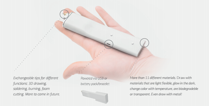 公司团队对原来的产品进行了改进,使其小型化,并加入了新的功能用途,使其成为一款多功能型的3D打印笔。“我们将3DSimo Mini设计成为一款终极制造工具。”3DSimo公司CEO David Paskevic称,“它不仅仅是一支3D打印笔,还可以用于蚀刻、泡沫切割和焊接。在未来,我们还可以为其加入更多的功能(如钻等),使之成为创造者普遍使用的工具。”