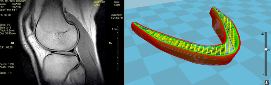 在制备植入物的时候,该研究团队首先扫描病人的膝盖,并使用Mimics软件生成3D打印植入物。这种植入物不仅更为便宜,而且属于量身定制。