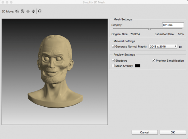 这项功能可以提高性能,增加打印和共享选项。虽然很多3D模型为了捕捉细节而使用了大量多边形,但是输出的结果并不支持这么高的分辨率。考虑到大多数桌面3D打印机都是低分辨率的,使用过多的多边形肯定会拖慢处理过程,而且在平板电脑上运行时更显力不从心。